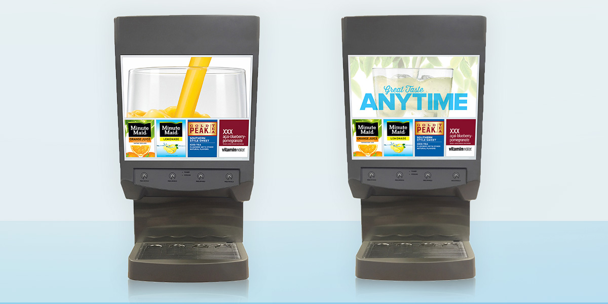 With a full range of both chilled and ambient products featuring vitaminwater, Minute Maid juices, Minute Maid Orchard’s Best and Gold Peak Tea, the Refresh Server dispensers not only provide flexibility to change products by daypart, but also efficiently utilize space, minimize waste and provide operational efficiency. What’s more, the Refresh Server+ features a digital screen that allows for messaging to enhance both consumer and operator experience.