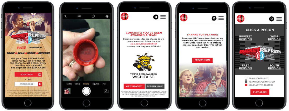 Since most of the brackets bust after round one, this program incentivizes shoppers with multiple chances to purchase these beverages and receive regional seed pieces. The win-win: shoppers are encouraged to keep shopping until they get the best teams that keep them in the game. And these repeat purchases benefit retailers.